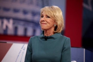 Photo:  U.S. Secretary of Education Betsy DeVos speaks at CPAC in National Harbor, Maryland in 2018. Photo by Gage Skidmore via Flickr