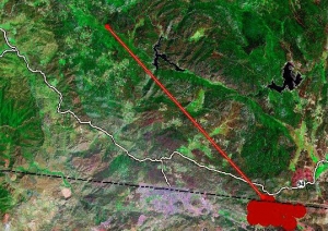 September 19, 2010 (Boulevard) 11:25 a.m. – A brush fire is burning within 1,000 feet of the U.S.-Mexico border, just south of the community of Boulevard in East County. “Currently the fire is seven to 10 acres, rapid rate of spread moving in an easterly direction,” said Cal-Fire battalion chief Nick Schuler.