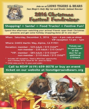 July 25, 2012 (San Diego’s East County) – Lions, Tigers and Bears, the nonprofit big-cat rescue facility located just east of Alpine, invites you and your family to come pitch a tent and spend a “Wild Night in the Country” camping out next to big cats.