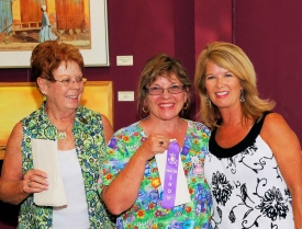 July 24, 2009 (El Cajon)--Gloria Chadwick, noted local artist and community art activist, received the Best in Show award at the Third Annual Alley Cat Juried Art Show produced by Friends of East County Arts, Inc. (photo (l to r): Bonnie Fredensborg, president of Friends of East County Arts, Inc., artist Gloria Chadwick, and El Cajon Councilwman Jillian Hanson-Cox.)