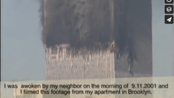 Photo: World Trade Center burning on September 11, 2001; screenshot from video taken by San Diego County resident Mar Tomic
