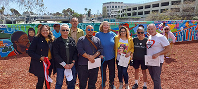 At the dedication of the large art work on Saturday, March 25, community members, volunteers, and representatives of numerous organizations that had input into the content of the mural were joined by past and present officeholders including two who are Jewish: former San Diego City Councilwoman Marti Emerald and the current Councilman from the 9th District, Sean Elo-Rivera, who also serves as president of the San Diego City Council.