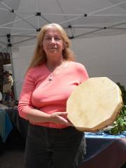 Although she had no experience, Neka'asawe said she soon began crafting the Native American instruments using elk, deer, buffalo, moose, horse and steer hides stretched over a pine wood frame with a intricate, spiderweb-like lacing beneath. Sizes range from drums small enough to hang in a car up to her largest creation, a 68 ½ inch stretched drum that now hangs in a temple near Macchu Picchu in Peru.