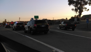 A heavy police presence tonight sought to prevent protesters from blocking Interstate 8. (Photo, right,by Jonathan Goetz; traffic slowdown on I-8). The public was advised to avoid Mollison and Broadway due to the demonstrations.