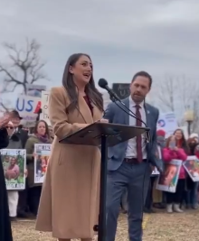 Photo via X: Congresswoman Sara Jacobs speaks at a rally to save US Aid.