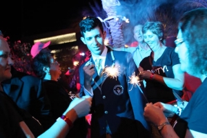 During a VIP party that drew over 1,000 guests this evening for Viejas’ 23rd anniversary, 299 people gathered around the pool at Viejas Hotel and handed off sparkler flames from one person to another, setting a Guinness World Record for Longest Sparkler Relay. The final sparkler lit a fuse that set off a spectacular chain of over 10,000 fireworks, setting a new Guinness World Record for Longest Chain of Fireworks.