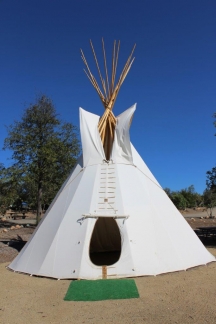 They’re spacious – each measures 20 feet in diameter, made of canvas from Colorado and pine wood poles from Montana. Tipi (also spelled tee-pee) is a Lakota Sioux Indian word meaning “living in.” The Native Americans used buffalo hides to make their tipis, which were toted on horseback from site to site across the Great Plains.