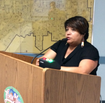 Anita Lopez (left) testified against the encouragement of alcohol-based businesses in Lemon Grove. She said the city should look at the detrimental effects of alcohol and not only the potential revenue. No one else spoke on the agenda item.
