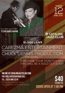 Eloise Laws will be sharing the stage with trunpeter Tom Browne at the Catalina Jazz Club in Hollywood on April 12, 2018. Tom Browne is noted for his rendition of "Funkin for Jamaica". I definitely plan to be there to see this can't miss performance.