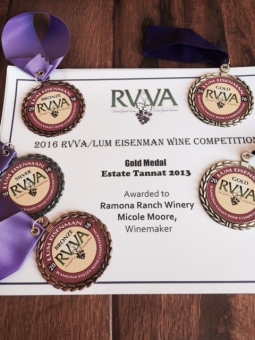 October 27, 2017 (El Cajon) — At this year’s Toast of East County held at the Elks Club Lodge in El Cajon, the 2017 Trail Blazer Awards were presented to three pioneers in the local wine industry: Ric Bonnoront of Red Wagon Vineyards in Jamul, Tim Peterson of Rock Canyon Winery in Alpine, Micole Moore of Ramona Ranch Winery, and Greg Maness of Casi Cielo Winery in Jamul.