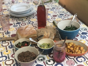 “We grow about 70-80% of our food and shop at farmers’ markets for coffee, tempeh, cheese, fruit and berries. We buy our staple foods like rice, beans, lentils, flour, nuts and seeds in bulk and like to buy 25-pound bags of it.”
